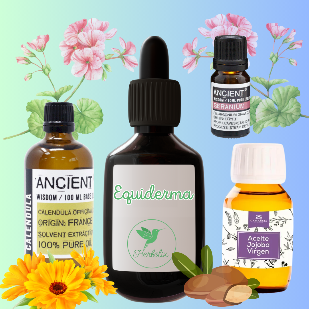 Descubre Equiderma, el sérum natural que calma, hidrata y regenera la piel. Con caléndula, jojoba y geranio, favorece la elasticidad y mejora la apariencia de estrías y marcas.